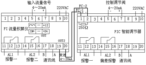 根據(jù)流量變送信號4~20mA輸入調(diào)節(jié)器與給定值作PID運算后輸出4-20mA的控制電流去控制氣動閥PCV1。